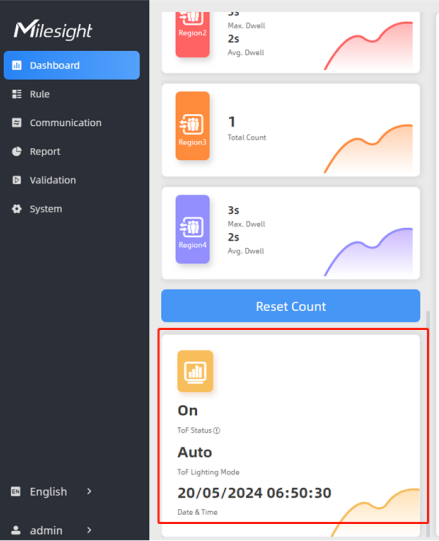 3. When using ToF Lighting Mode, the Dashboard will display relevant information.