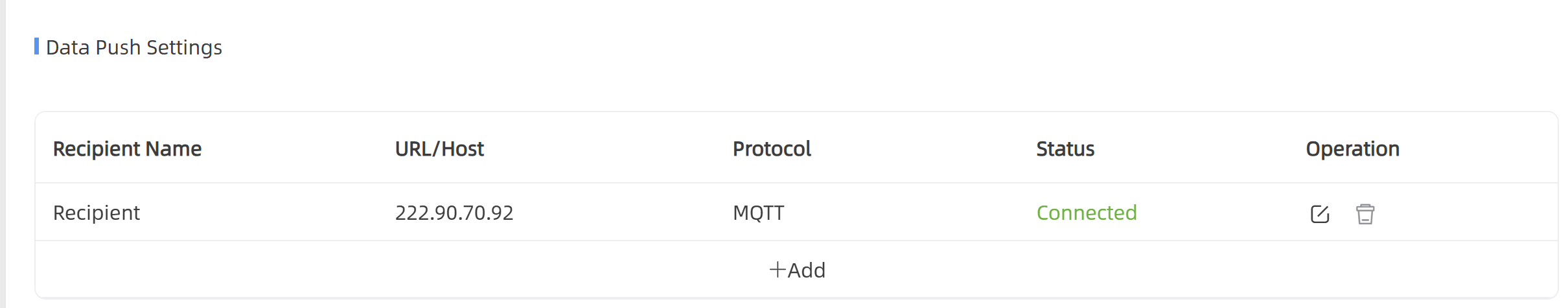 The device supports adding data recipients (supports HTTP(s)/MQTT(s)). The device will proactively push data to the receivers according to the configured reporting scheme.