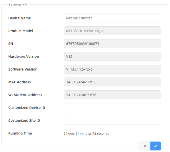 All information about the hardware and software can be checked on this page. Besides, users can modify the device name, customize device ID and site ID for large amounts of devices management.