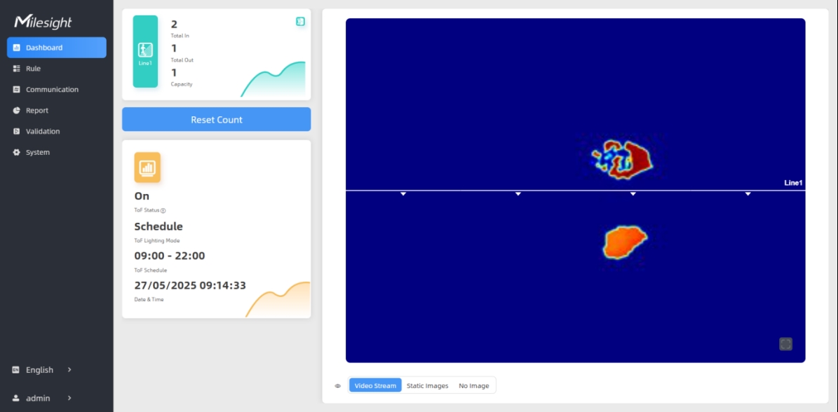 | Reset Count | Clear all accumulated entrance and exit people counting values. |