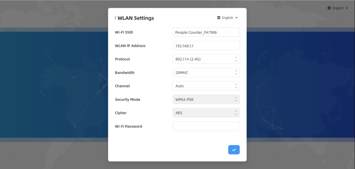The device provides user-friendly web GUI for configuration and users can access it via Wi-Fi connection. The recommended browsers are Chrome and Microsoft Edge. The default IP of Wi-Fi is 192.168.1.1, and default SSID is People Counter_XXXXXX (can be found on the label).