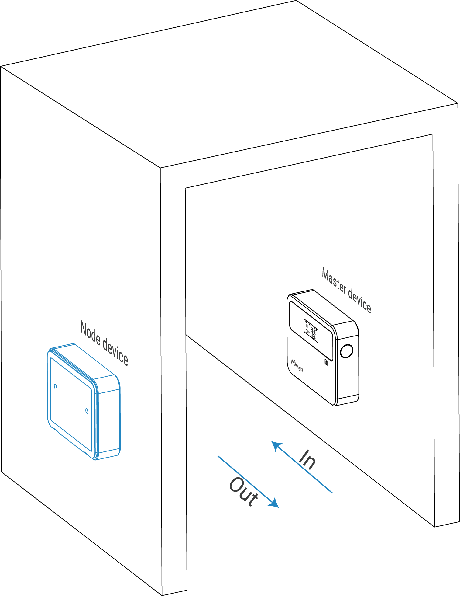 Step 2: Adjust node device's DIP. The recommended detection range between node device and master device is 1.2~3m. If the range is 2 meters or less, set the DIP switch on the node device to the "Short" position; if the range exceeds 2 meters, set it to the "Long" position.