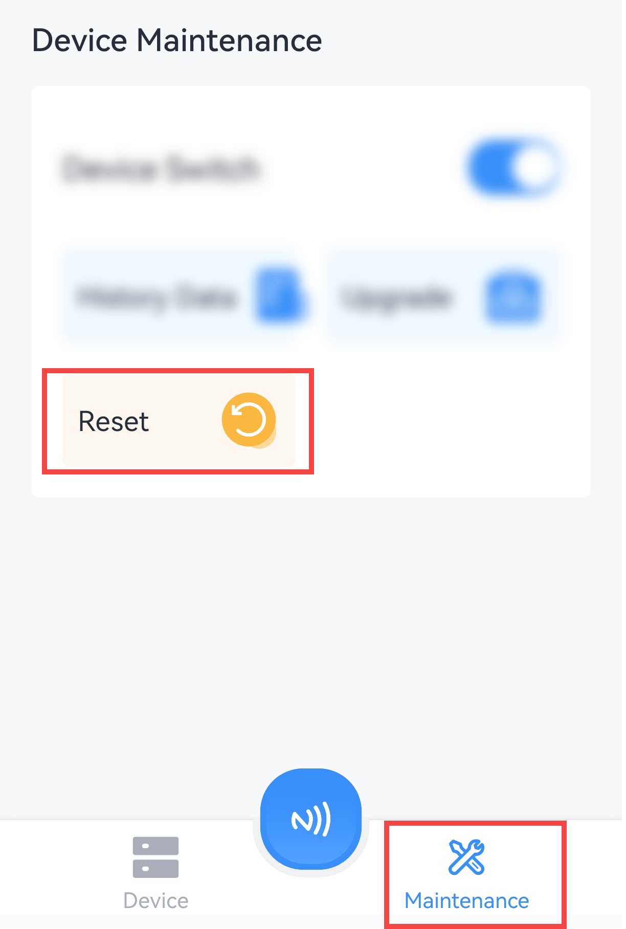 Via ToolBox App: Click Reset and attach the smartphone to device to reset