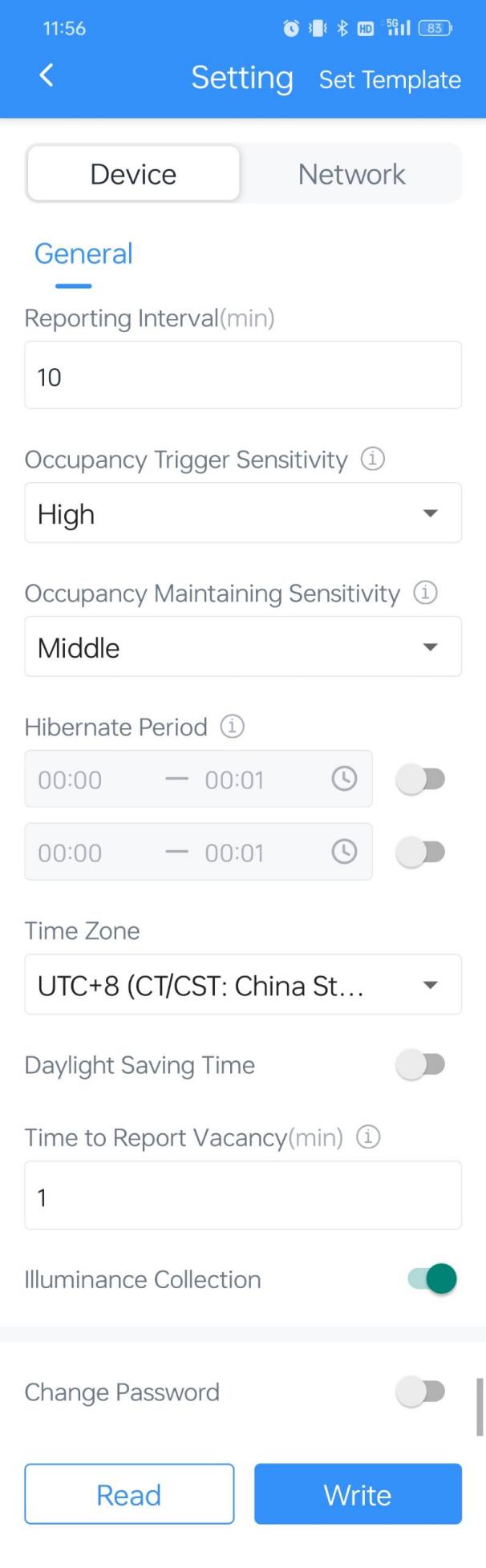 | Time to Report Vacancy(min) | After being released from the occupied state, it needs to wait for the idle time. If no occupancy is detected again during the idle time, the space will be considered as vacancy and the device will report a Vacant report. Default: 3min, Range: 1~60min. |
