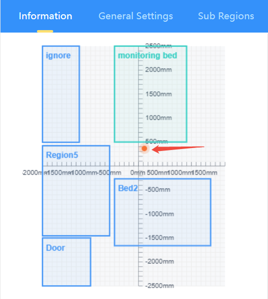 Step 5: When a fall occurs, no one can assist the fallen individual in getting up until the fall alarm has been reported. Navigate to <Information>, you can see the target's point displayed on the coordinate axis, and the Fall Alarm.