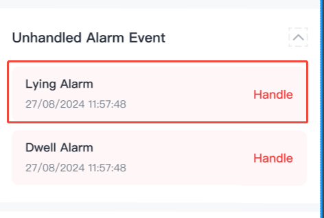 The alarm will be resolved when the target leaves the detection space or manually clicking Handle button.