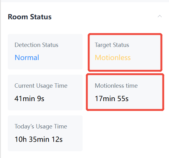 | Today's Usage Time | Cumulative occupancy duration for the day (resets daily at 00:00) | |