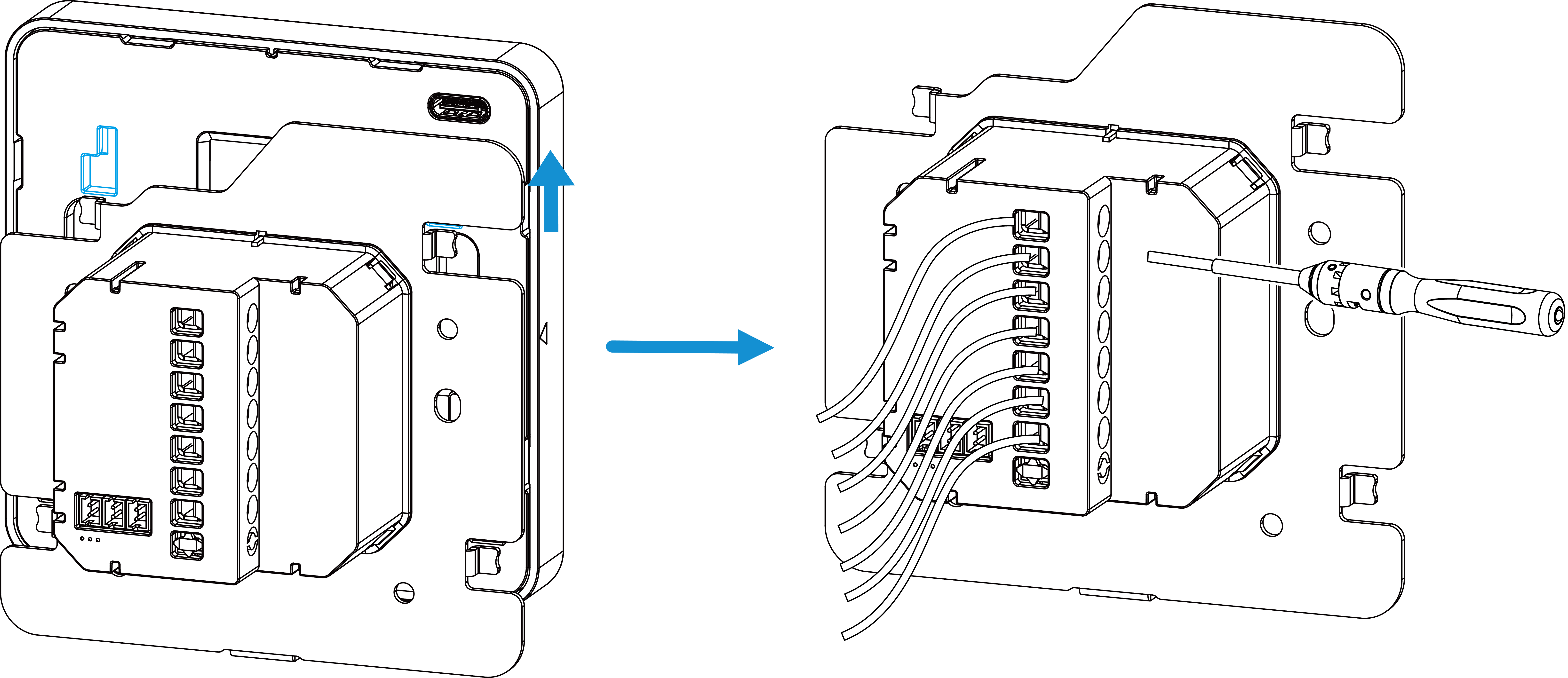 3. Remove the wire terminal from the device, then screw the wires to the wire terminals.Note:- If hard plastic wires are used, it must be bent to an appropriate angle in advance;