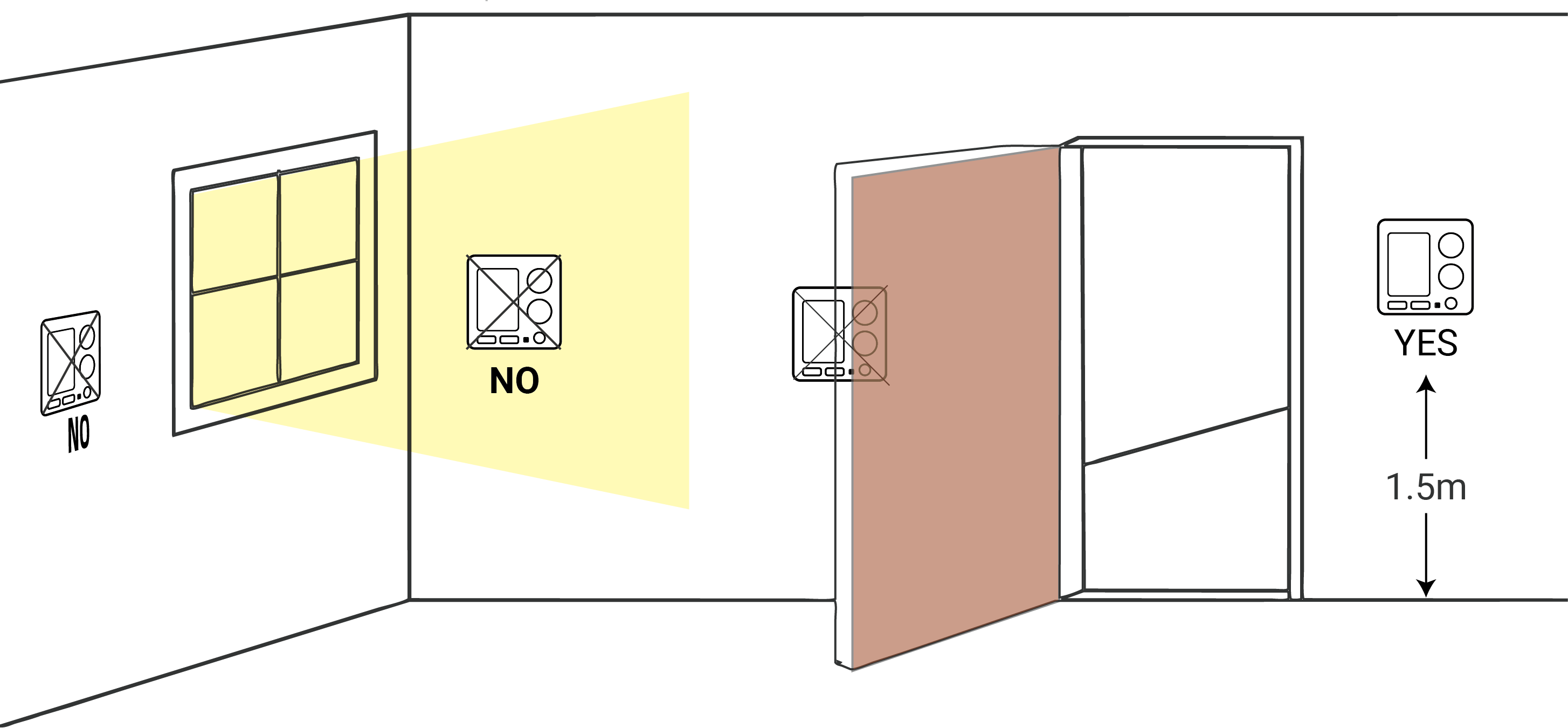 When using built-in sensors, it is suggested to install the thermostat about 5 ft.