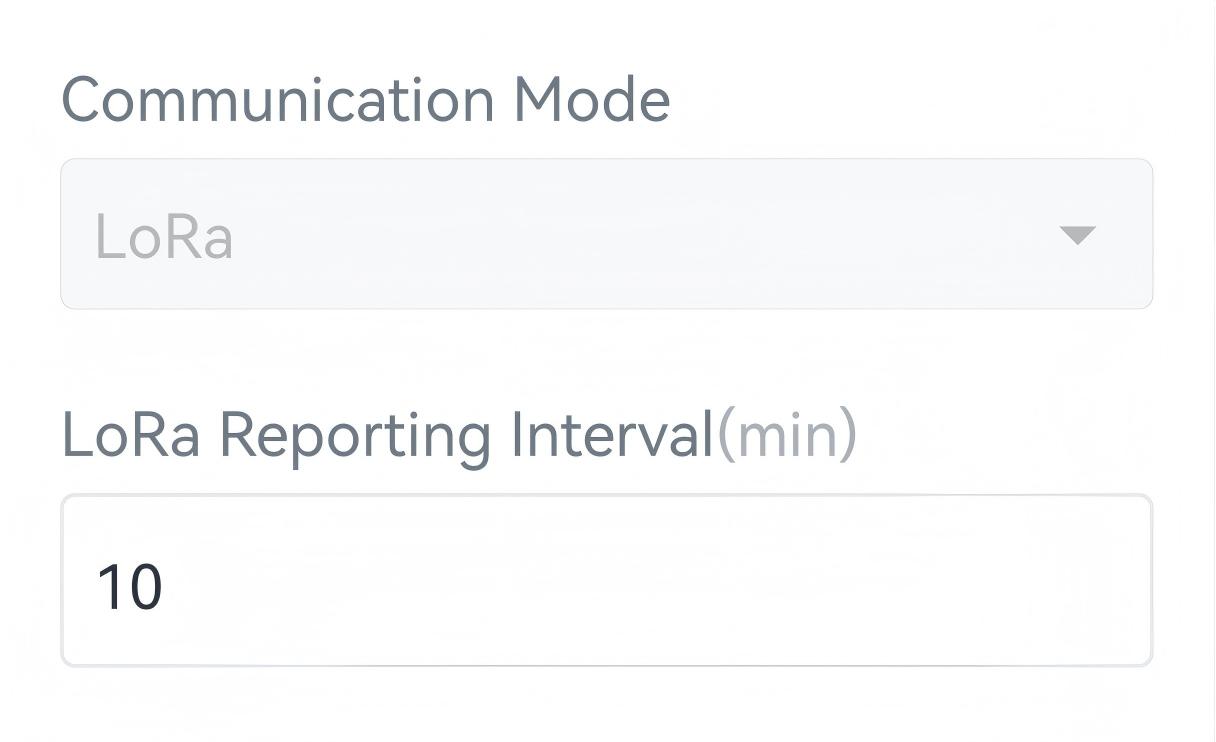 | LoRa Reporting Interval | The interval to report data to the LoRaWAN® gateway. Range: 1-1440 mins, Default: 10 mins. |