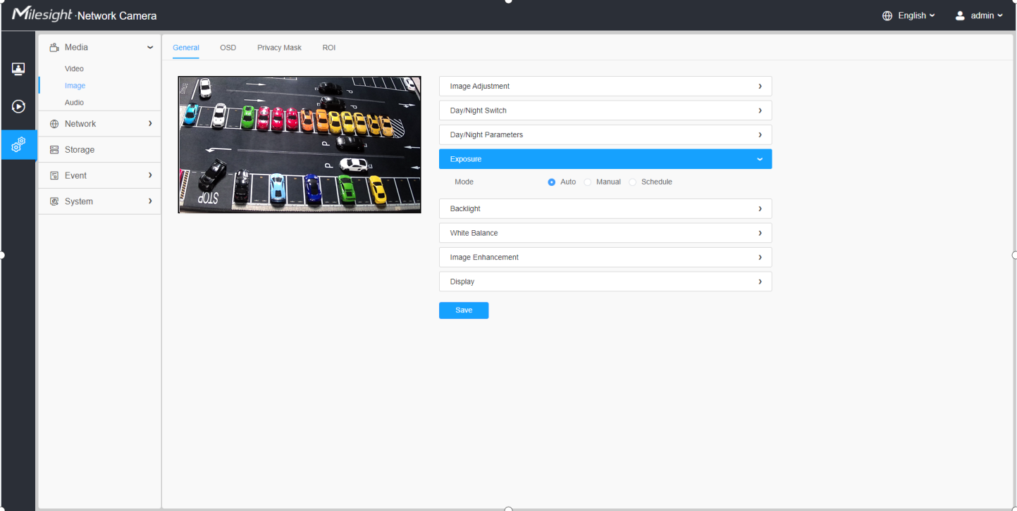 | Exposure Mode | Auto Mode, Manual Mode and Schedule Mode are available. Auto Mode: The camera will adjust the brightness according to the light environment automatically. Manual Mode: The camera will adjust the brightness according to the value you set, you can set the exposure time from 1~1/100000s, the higher the value is, the brighter the image is. Schedule Mode: You can customize the schedule to enable/disable Auto Mode and Manual Mode.