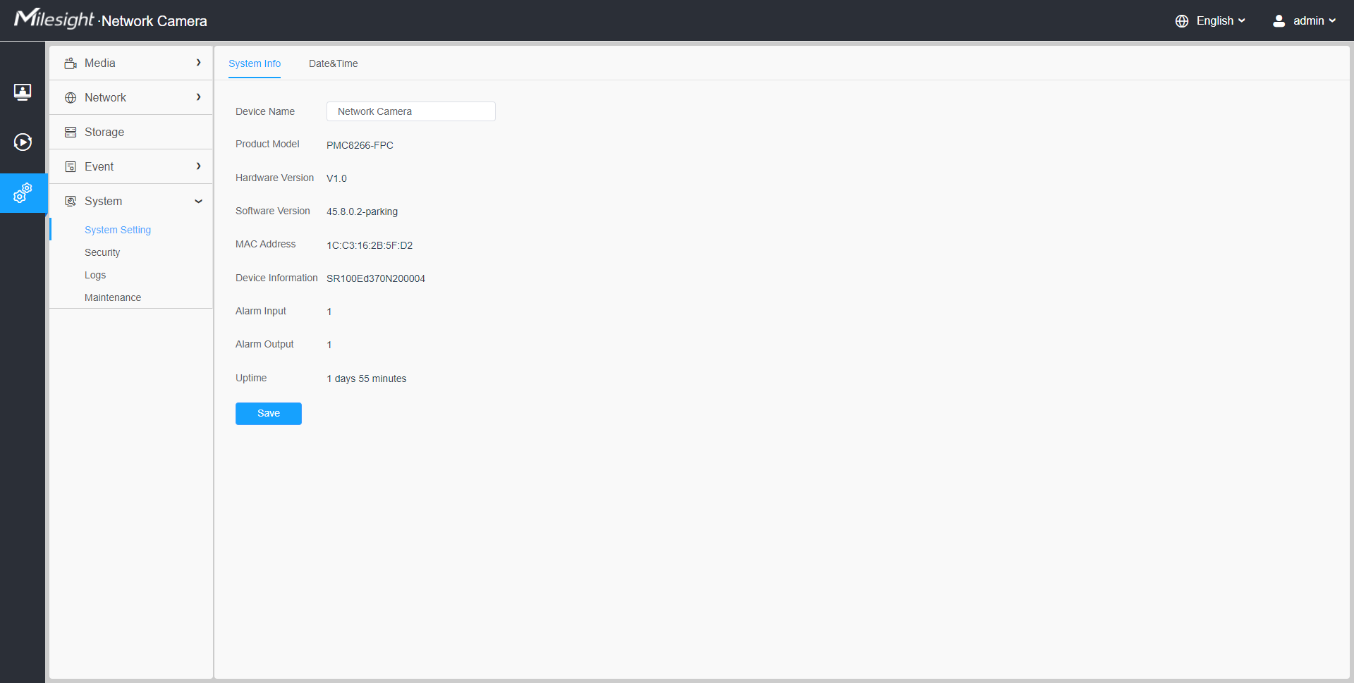 Note: The Alarm Input will appear only when the camera have alarm input/output interface.