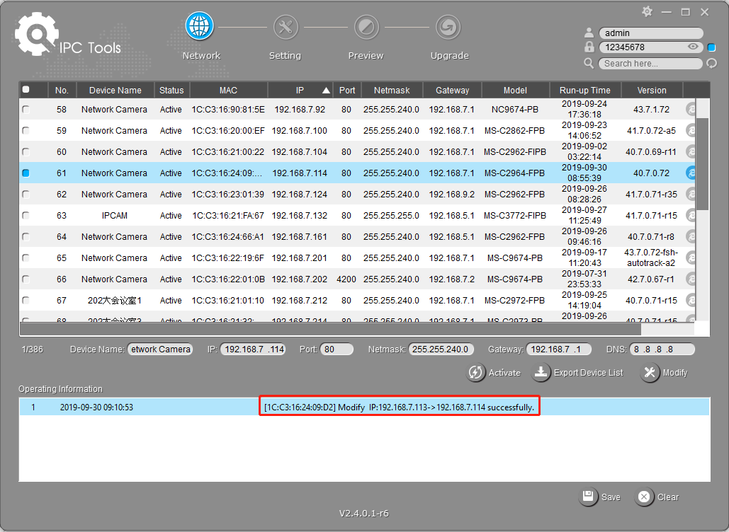 Step5: After activation, you can change the IP address or other network values, and then click “Modify” button.
