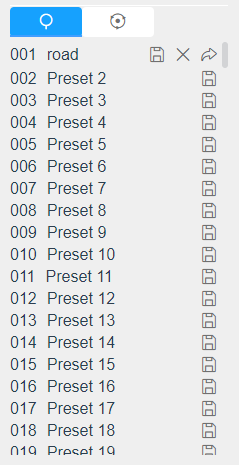 A preset is a predefined image position. You can click the call button from the preset list to quickly go to the desired image position.