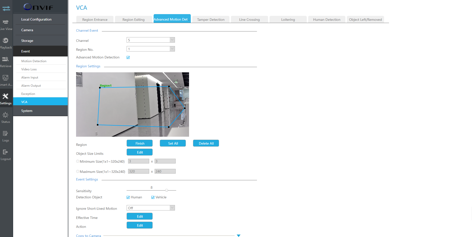 Step1.Select Channel and Region No, then enable Advanced Motion Detection.