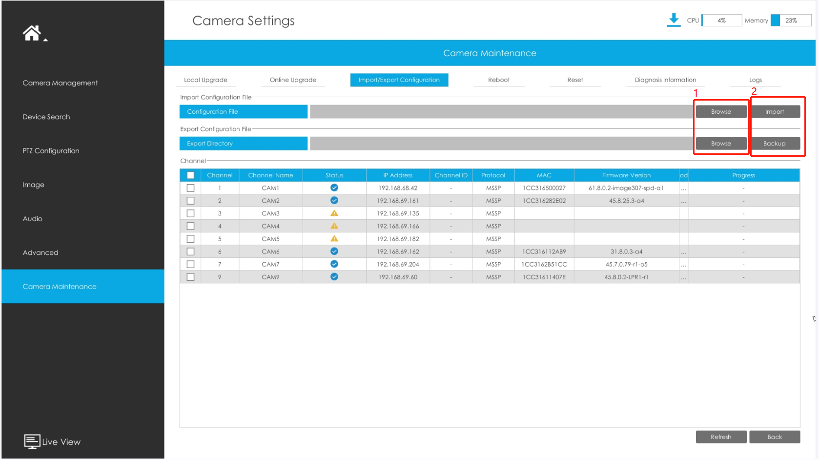 Step 1. Choose the corresponding channel you want to import/export configuration files.