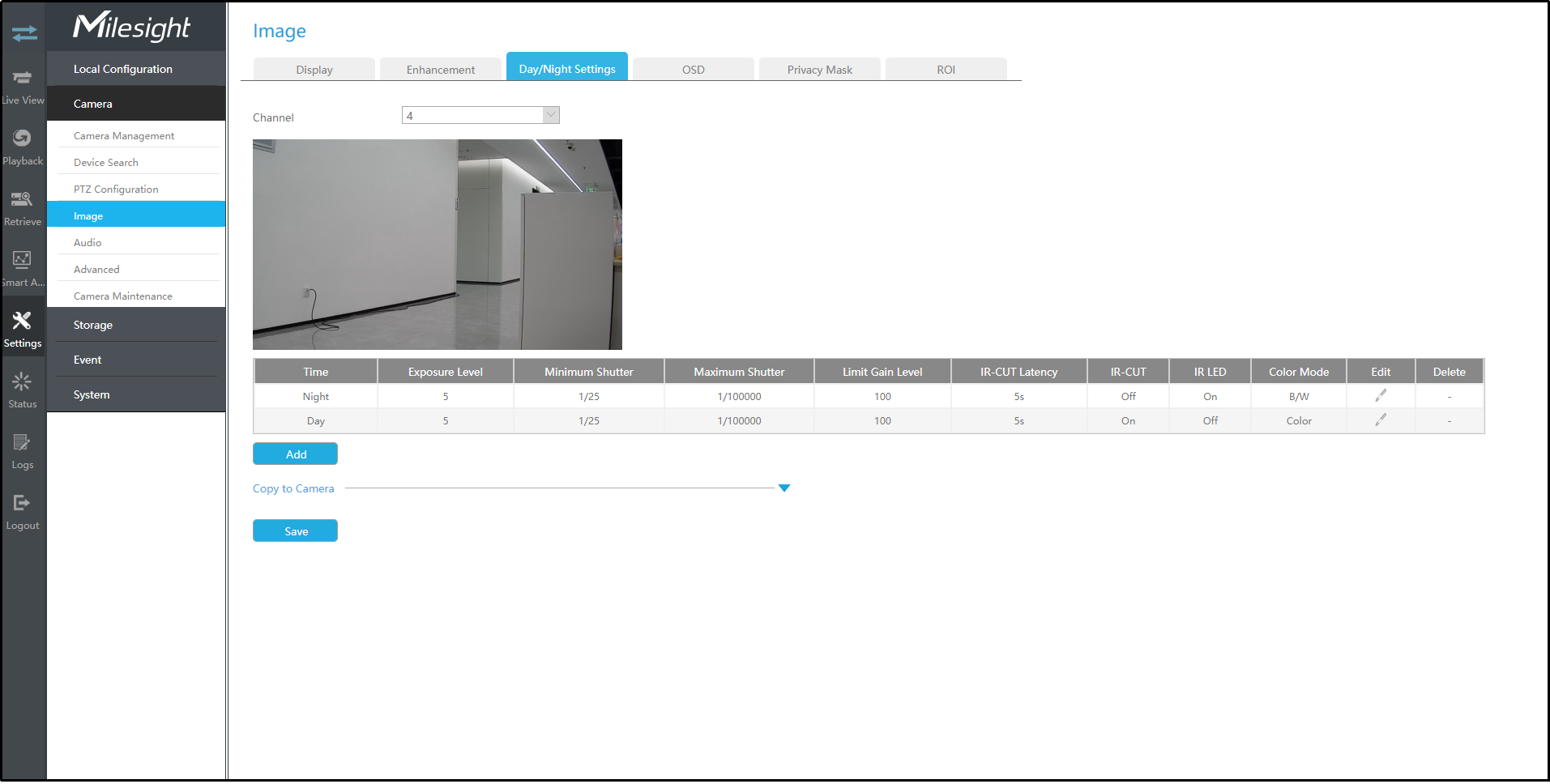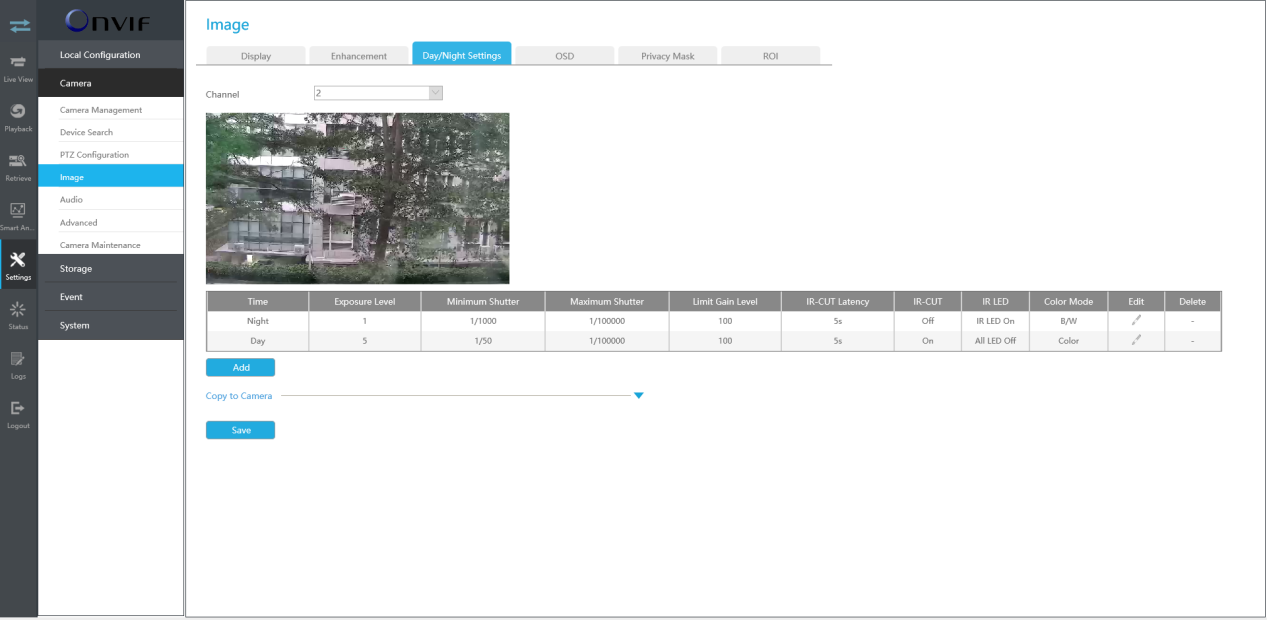 Step 3. Copy the image settings to other channels by clicking "Copy" "Copy to Camera" on the bottom of the windows.