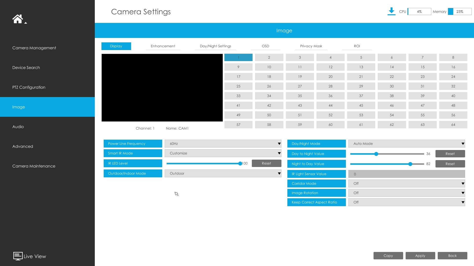 Step 3. Copy the image settings to other channels by clicking"Copy" "Copy to Camera"on the bottom of the windows.