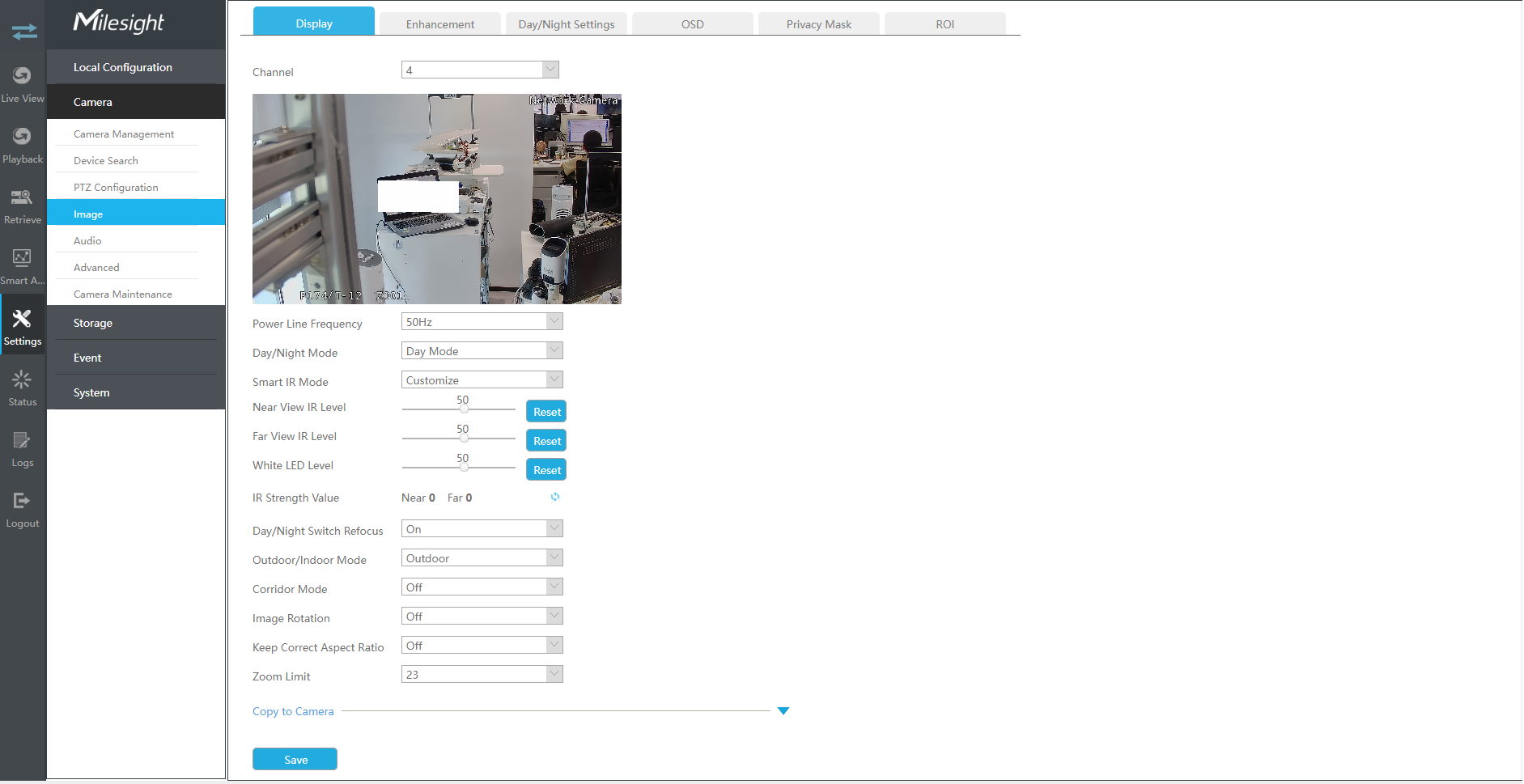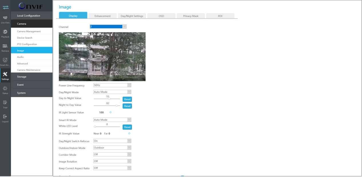 - Smart IR Mode and IR LED Level are supported for cameras with IR LEDs.