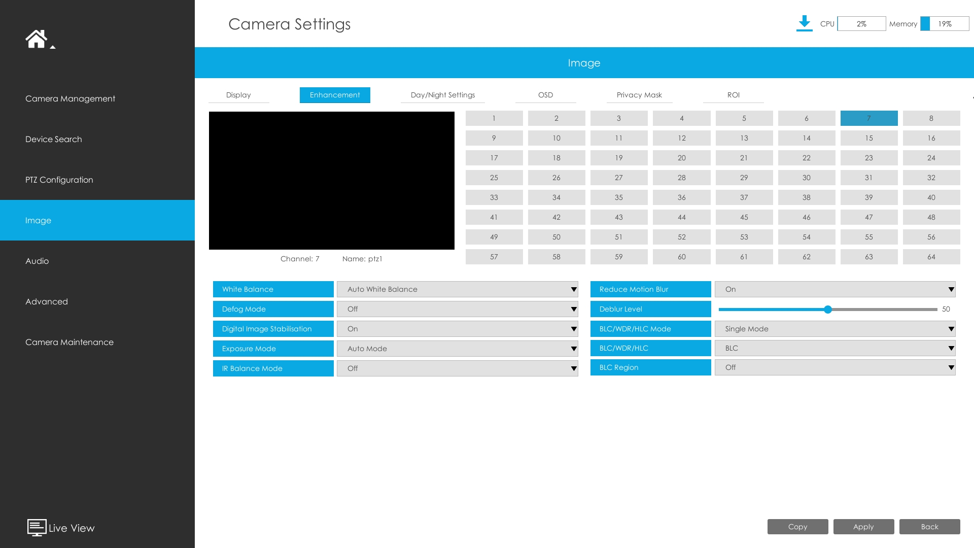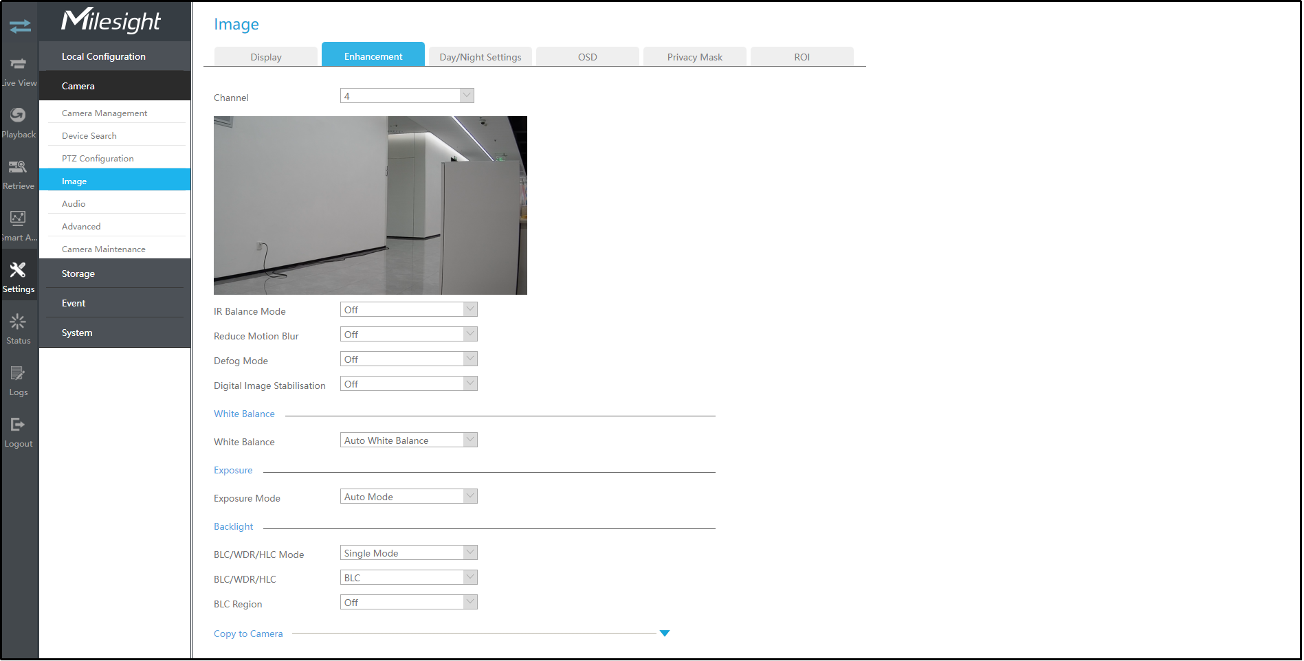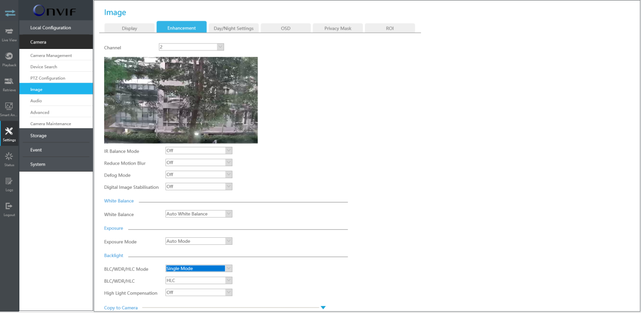 BLC/WDR/HLC: Click to configure Back Light Compensation, Wide Dynamic Range or High Light Control.
