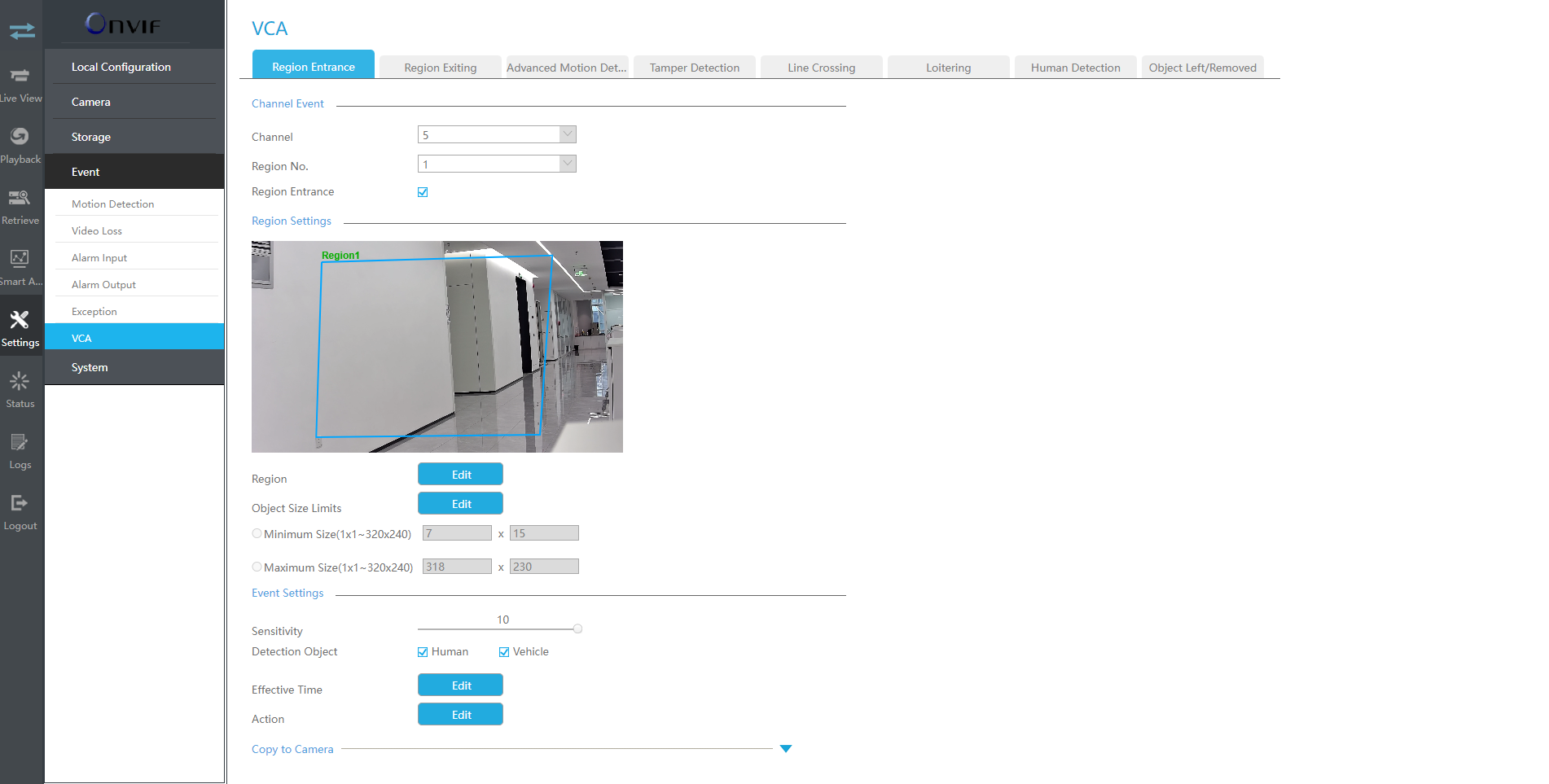 Step1.Select Channel and Region No, then enable Region Entrance.