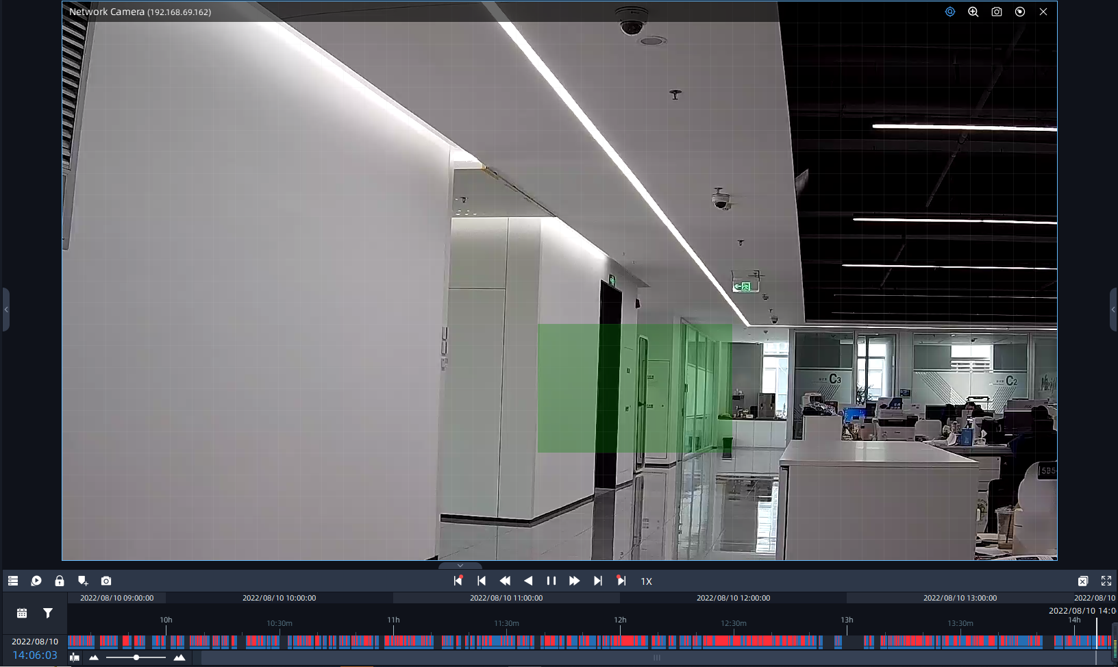 Click and draw an area on the screen to search the motion detection events. The search results will be displayed in red on the timeline.