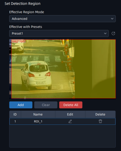 Normal: Configure the LPR detection regions for the current area. Advanced: Configure different LPR detection regions for different PTZ presets(Only support Preset 1~4 so far). |