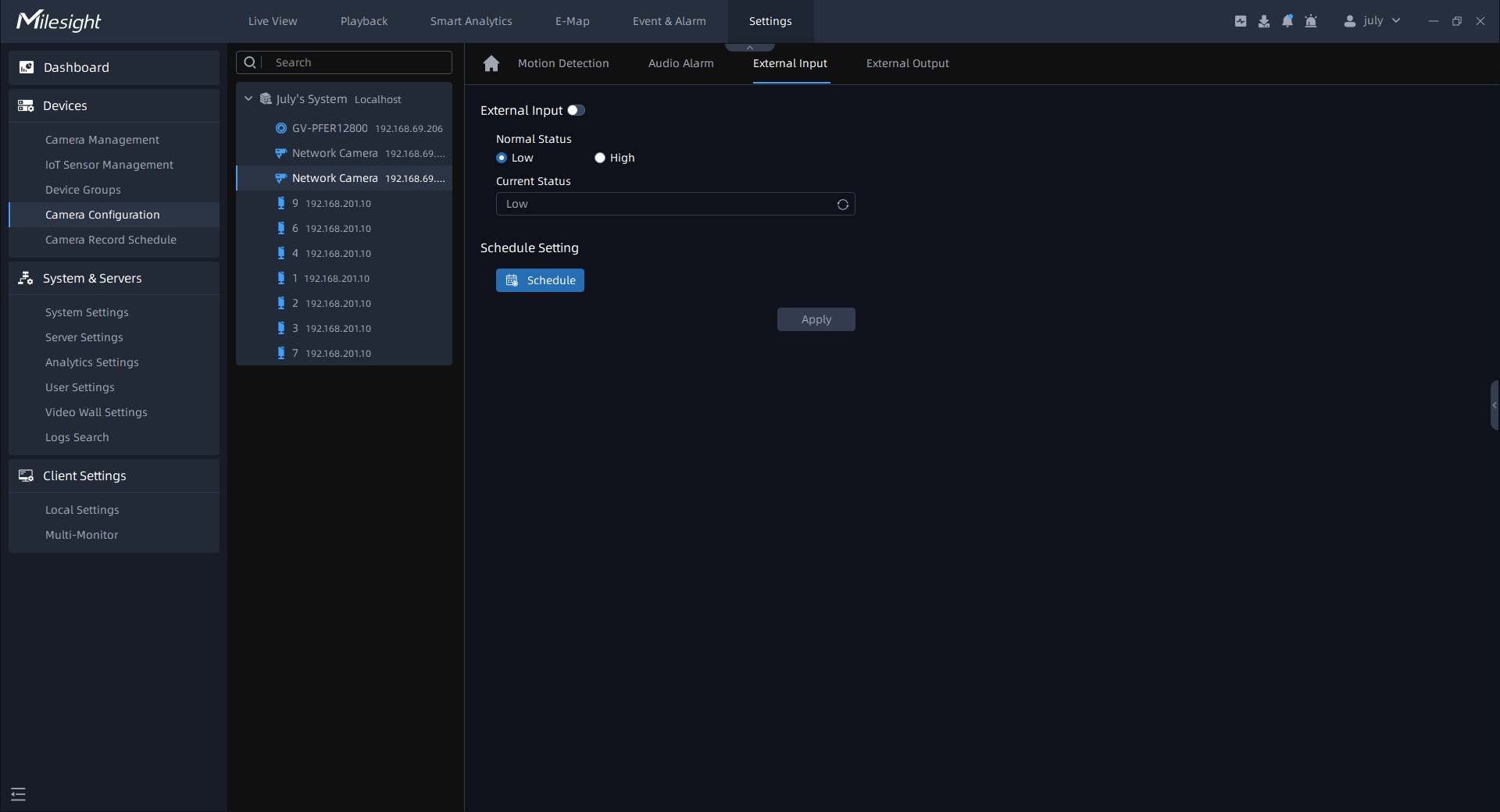 Please set the Normal Status firstly. When the Current Status is different with Normal Status, it will trigger the alarm.