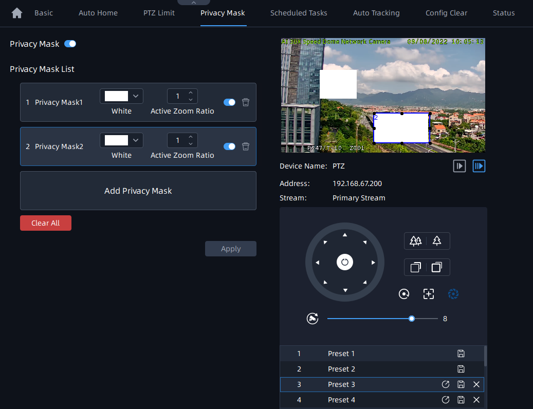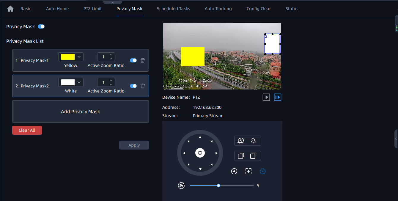 Step2: Click the Add Privacy Mask and hold down the mouse to draw the area in the preview window;