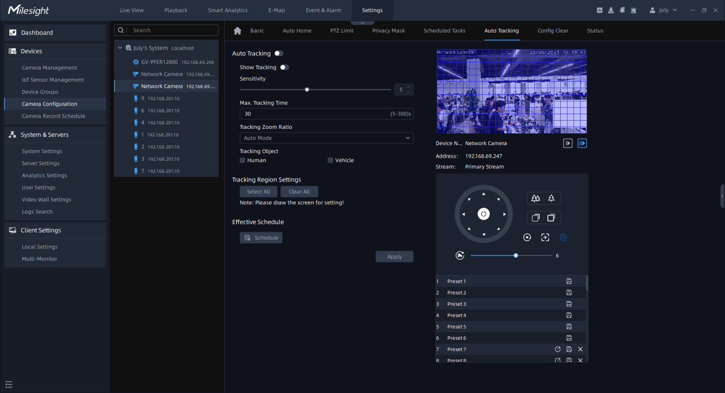 Step6: Set Tracking Object. Check Human or Vehicle attribute, and the camera will automatically track the corresponding object;