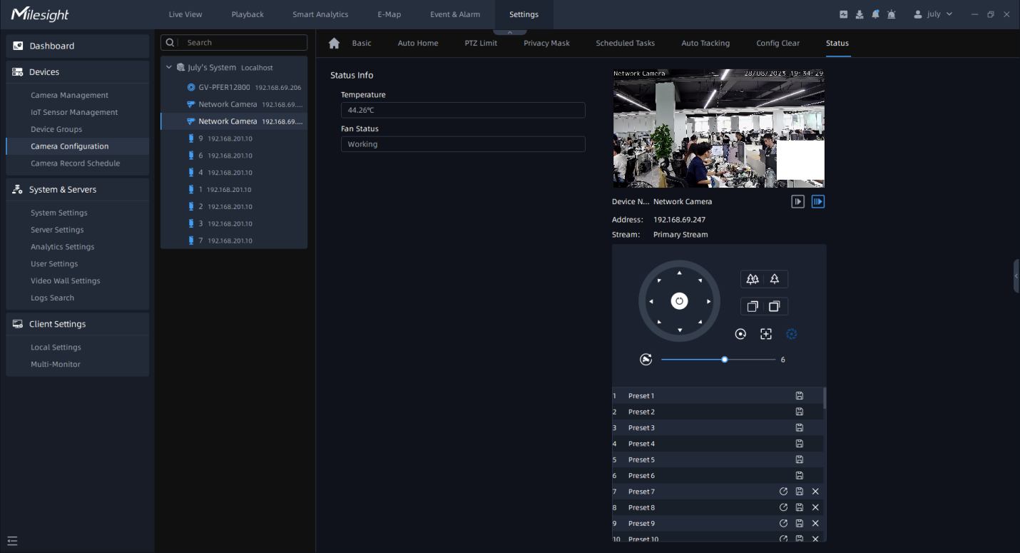 Here you can know the status of the PTZ, including temperature, heater status and fan status.