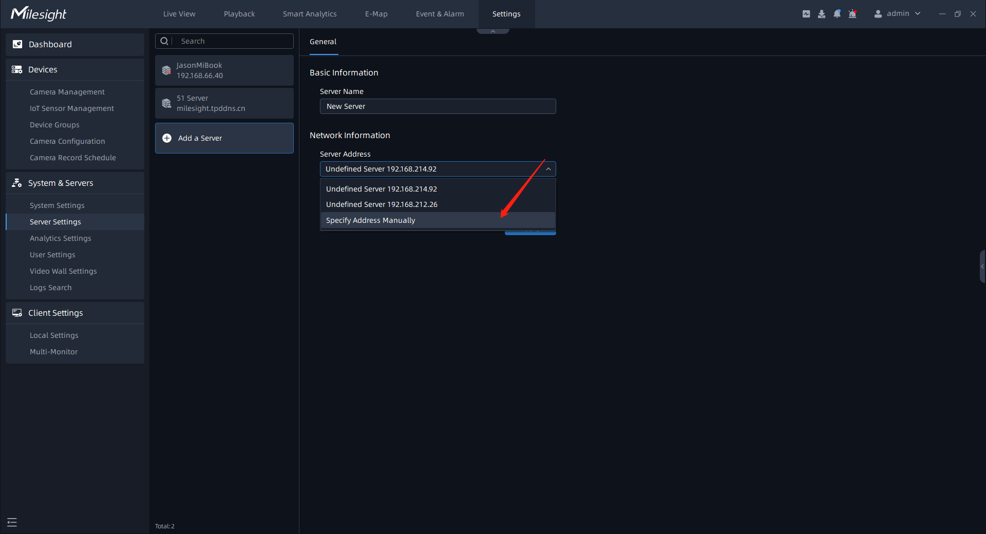 In this interface, users can not only directly add undefined servers in the same LAN as any server in the current system, but also add servers in different LANs by manually entering the server addresses.
